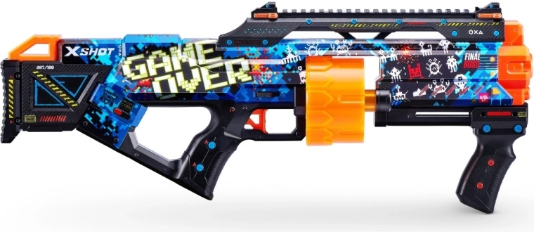 Doświadcz autentycznych wrażeń z gry z blasterem X-Shot Skins Last Stand Game Over. Ten blaster łączy szybkość, precyzję i kreatywny design inspirowany skórkami z gier.