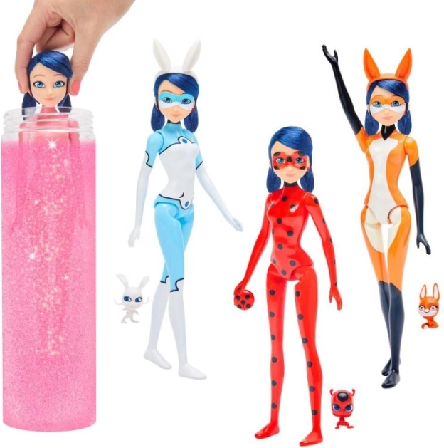 Z tą wspaniałą lalką Marinette twoje dziecko zanurzy się w świecie superbohaterów. Magic Heroez Transformation pozwala odkrywać tajemnice za pomocą wody. W każdej kapsule czeka Marinette w trzech unikalnych strojach – lisicy, królika lub biedronki.