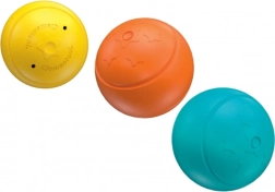 Trzy piłeczki o różnych rozmiarach toczą się po kolorowych zjeżdżalniach i trafiają do odpowiednich drzwiczek – idealne do ćwiczenia rozpoznawania kolorów, sortowania i logicznego myślenia.