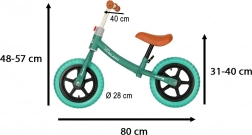 Piankowe koła są ciche, nie brudzą i nie rysują podłogi, dlatego sprawdzą się także do jazdy w pomieszczeniach. Dzięki regulowanemu siodełku (31–40 cm) i kierownicy (48–57 cm) biegówka rośnie wraz z dzieckiem.