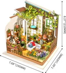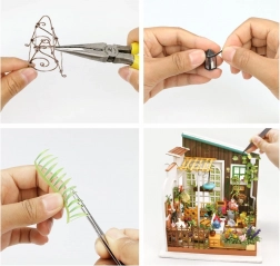 Ta dopracowana miniatura DIY zamieni Twój wolny czas w przyjemne, twórcze doświadczenie. Zestaw zawiera wstępnie wycięte elementy ze sklejki, papierowe nadruki, elementy tekstylne i metalowe, farby oraz klej. Dzięki oświetleniu LED wszystkie detale pięknie się wyróżnią, a gotowy model stanie się stylową dekoracją na półkę lub do biura.