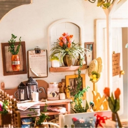 Miniaturowe kwiaty, meble, poduszki i dodatki tworzą wierną atmosferę ogrodowego tarasu – idealne jako stylowa dekoracja domu.