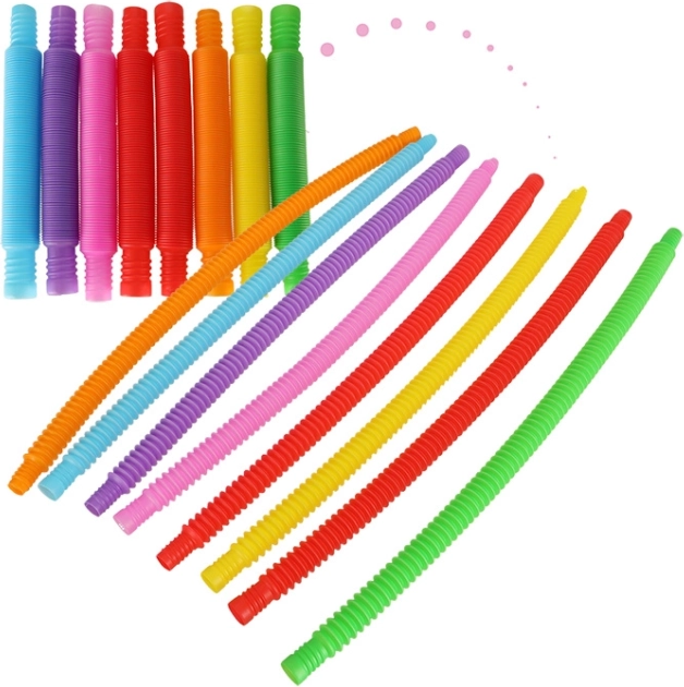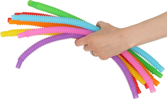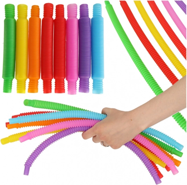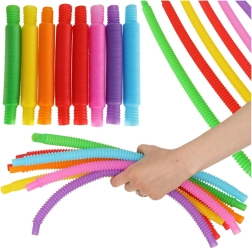 Odkryj magię sensorowych rurek, które dzieci uwielbiają! Każda z ośmiu kolorowych rurek oferuje godziny zabawy dzięki swojej elastycznej naturze. Można je rozciągać, skręcać i łączyć w różne kształty, dając dzieciom przestrzeń do kreatywności.