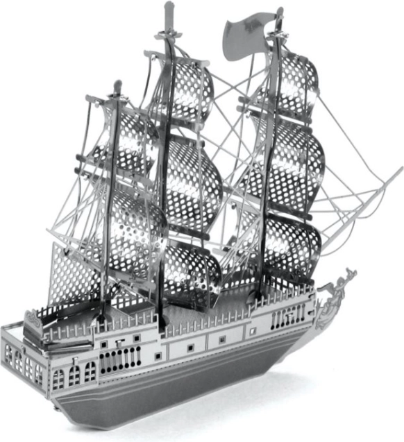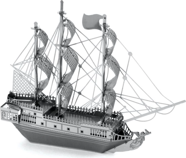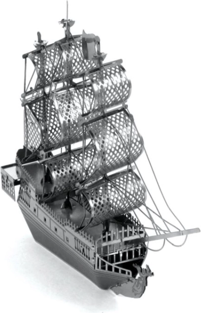 Elegancka metalowa replika legendarnego statku Black Pearl ucieszy miłośników modeli, filmowych ikon i oryginalnych dekoracji. Z 2 stalowych blaszek o wymiarach 11 × 11 cm złożysz szczegółowy statek z delikatną perforacją żagli i realistycznymi elementami kadłuba. Montaż wymaga cierpliwości, ale nagrodą jest stylowa dekoracja do mieszkania, biura czy pracowni.