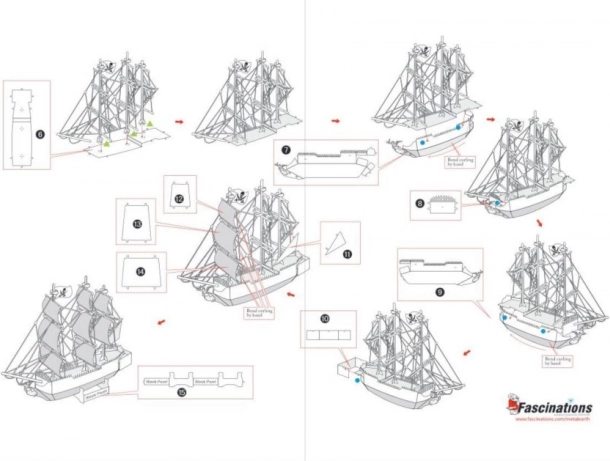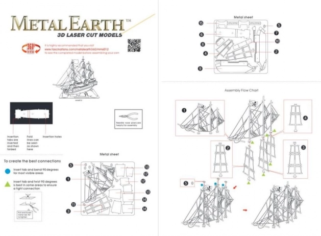 Zestaw obywa się bez kleju – elementy łączy się za pomocą zamków i zaginanych wypustek. Dla wygodniejszej pracy polecamy małe szczypce i cążki (nie są częścią zestawu). Dzięki precyzyjnemu grawerowaniu laserowemu uwidaczniają się wszystkie kontury i detale, które czynią z tego modelu prawdziwy kolekcjonerski egzemplarz.