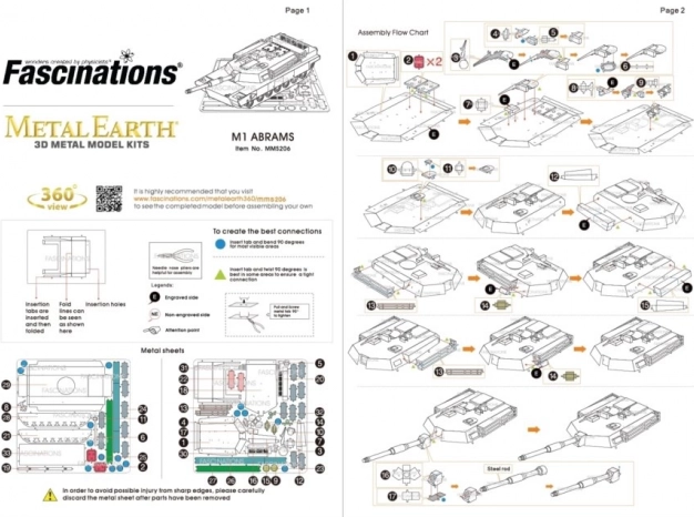 Składanie samej układanki jest łatwe. Poszczególne elementy są precyzyjnie wyrywowane laserowo na stalowych arkuszach. W skład zestawu wchodzą dwa stalowe arkusze i instrukcja. Do pracy będziesz potrzebować podstawowych narzędzi, takich jak szczypce do cięcia i cienkie obcęgi.