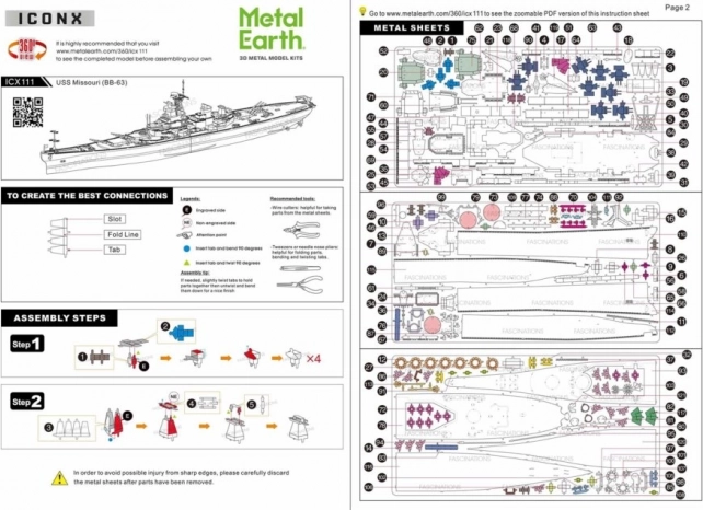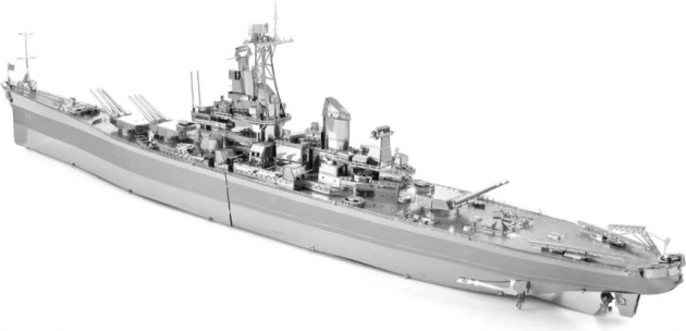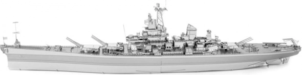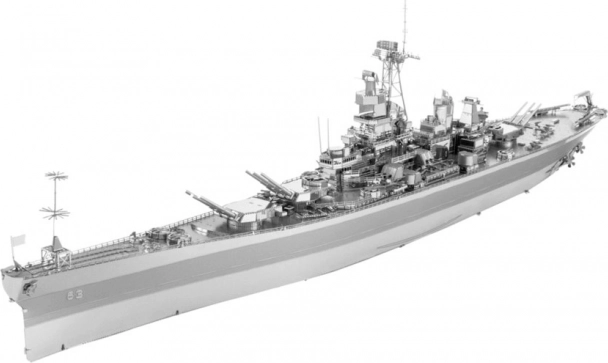Ekscytujące wyzwanie, frajda z składania i olśniewający efekt – takie są modele METAL EARTH! Model z ekskluzywnej linii ICONX w eleganckim opakowaniu prezentowym zachwyci Cię jeszcze doskonalszym odwzorowaniem detali! Budowa 3D puzzli METAL EARTH ICONX wymaga cierpliwości i zręcznych rąk. Efekt pracy w pełni wynagrodzi włożony wysiłek! Miniaturowe repliki to wyjątkowo efektowna i przykuwająca wzrok dekoracja nie tylko w domu, ale także w biurze czy w szkole. Z prostokątnych arkuszy stali (21 x 11 cm) z elementami światowych monumentów, słynnych środków transportu, instrumentów muzycznych czy zwierząt powstaną pod Twoimi rękami dopracowane w szczegółach, fascynujące modele. Autentyczny wygląd 3D puzzli METAL EARTH ICONX uzyskano dzięki precyzyjnemu laserowemu grawerowaniu. Opakowanie zawiera 3 stalowe arkusze, pęsetę i instrukcję montażu. Narzędzia nie są częścią zestawu. PROCEDURA MONTAŻU: Poszczególne elementy wyjmij z metalowych arkuszy, w razie potrzeby użyj małych cążek do cięcia (nie wchodzą w skład zestawu). Części łączy się za pomocą zamków tworzonych przez zaczep (języczek) i otwór. Zagiń języczek przy pomocy małych, cienkich szczypiec (nie wchodzą w skład zestawu) i stopniowo połącz wszystkie zamki, aż powstanie bardzo realistyczne dzieło! Zalecany wiek: od 14 lat. USS Missouri (BB-63) był pancernikiem marynarki wojennej USA, zbudowanym podczas II wojny światowej i służącym aż do czasu wojny w Zatoce Perskiej. Była to ostatnia jednostka typu Iowa. Missouri stał się jednym z ostatnich pancerników zbudowanych w USA. Na jego pokładzie 2 września 1945 roku podpisano kapitulację Japonii, która zakończyła II wojnę światową. Missouri zamówiono w 1940 roku, a ukończono w czerwcu 1944. Podczas wojny na Pacyfiku uczestniczył w bitwach o Iwo Jimę i Okinawę, ostrzeliwując japońskie wyspy. Został również użyty w walkach podczas wojny koreańskiej w latach 1950–1953. W 1955 roku został wycofany i przeniesiony do rezerwy US Navy. W 1984 roku przeszedł modernizację, a następnie wziął udział jako jednostka wsparcia w wojnie w Zatoce. Missouri otrzymał łącznie 11 gwiazd (odznaczeń) za służbę w II wojnie światowej, w Korei oraz w wojnie w Zatoce. Wycofany został 31 marca 1992 roku, jednak pozostawał w rejestrze US Navy do stycznia 1995, kiedy skreślono go z listy. W 1998 roku, dzięki wsparciu USS Missouri Memorial Association, stał się okrętem-muzeum w Pearl Harbor na Hawajach. Więcej na Wikipedii Wymiary złożonego modelu ok. 30,5 x 8,3 x 3,8 cm