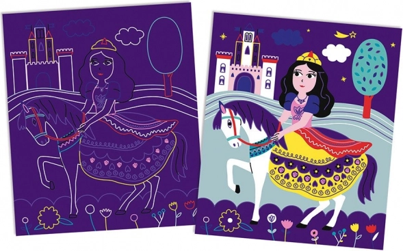 Ten elegancki zestaw zdrapywanek zamienia każdy ruch drewnianym rysikiem w czarujący obraz z księżniczkami – od balu, przez jazdę konną, aż po schody pałacu. Dzieci zdrapują wierzchnią warstwę kart i odkrywają żywe kolory oraz lśniące złote detale, które dosłownie ożywają na ich oczach.