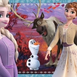 Przeżyj na nowo magię filmu Kraina Lodu 2 dzięki tym pięknym puzzlom, które zawierają cztery różne obrazki z ulubionymi bohaterami. Puzzle zostały zaprojektowane tak, aby łączyć zabawę z rozwojem motoryki małej u dzieci. Wymiary ułożonego obrazka to około 36 x 26 cm, co stanowi idealny rozmiar dla małych rączek.