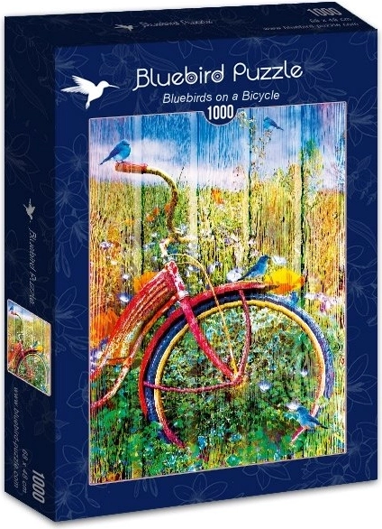 Odkryj urokliwy motyw niebieskich ptaków na rowerze, który zachwyci miłośników spokojnego układania i kolekcjonerów pięknych ilustracji. Dzięki 1000 elementom czeka Cię zrównoważony poziom trudności, a po ułożeniu otrzymasz obraz o wymiarach ok. 48 × 68 cm, idealny do oprawienia w ramę.