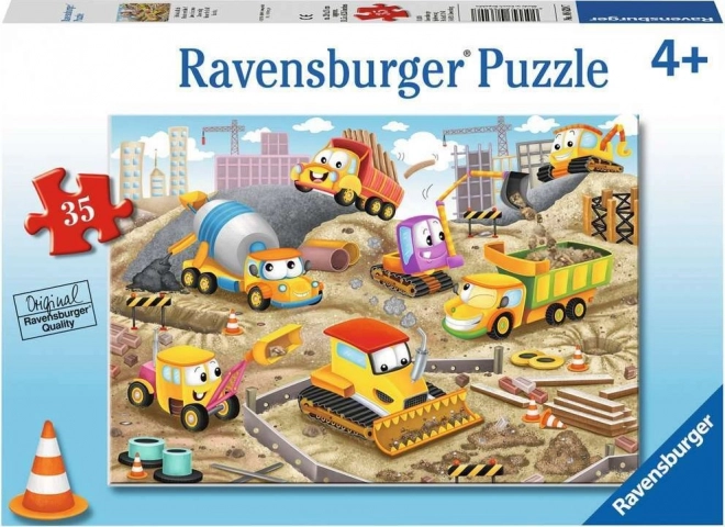 Odkryj radość z układania z dziecięcymi puzzlami RAVENSBURGER „Podnieście dach!” składającymi się z 35 elementów. Wysokiej jakości karton, precyzyjne wykroje i intensywne kolory zapewniają przyjemne wrażenia i długą trwałość. Ułożony obraz ma wymiary ok. 29 × 21 cm, więc zmieści się na każdym stole lub podkładce.