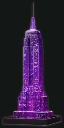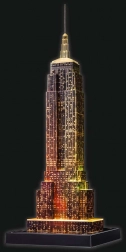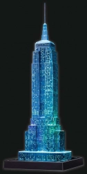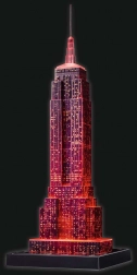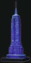 Odkryj kultowy Empire State Building jako świecące puzzle 3D od RAVENSBURGER – edycja nocna z LED, która zmienia kolory. Dzięki technologii EasyClick solidne plastikowe elementy dokładnie do siebie pasują, a model o wysokości 48,5 cm trzyma się bez kleju.