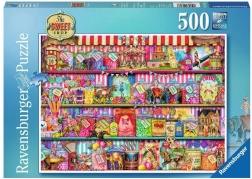 Odkryj magię układania z puzzlami Cukiernia od marki Ravensburger. Te puzzle z 500 elementami przeniosą Cię do słodkiego świata pełnego detali i kolorów, idealnego do rodzinnej zabawy lub relaksu w pojedynkę.