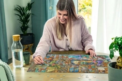 - Dzięki strukturze naturalnej lnianej tkaniny, motywy na puzzlach są wyraziste i realistyczne