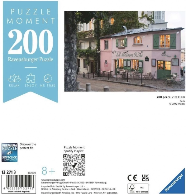 Odkryj urok francuskiej metropolii z wysokiej jakości puzzlami Ravensburger. Zestaw składa się z 200 precyzyjnie wyciętych elementów, które idealnie do siebie pasują i tworzą zachwycającą panoramę Paryża. Idealny wybór do relaksu, rozwijania koncentracji oraz radości z ukończonego obrazu.