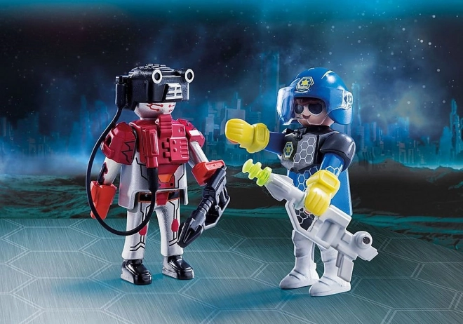 Wyrusz w głąb kosmosu i pilnuj porządku jako odważny policjant albo spróbuj szczęścia w roli sprytnego złodzieja. Ten kompaktowy zestaw to świetne uzupełnienie wszystkich kosmicznych zestawów PLAYMOBIL i zapewnia natychmiastową zabawę bez skomplikowanego budowania.