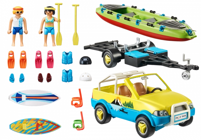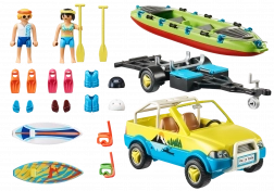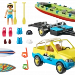 Zestaw PLAYMOBIL FAMILY FUN samochód plażowy z przyczepą do łodzi wprowadza barwny świat letnich aktywności – od fal dla surferów po spokojne wiosłowanie w kanoe. Solidny samochód z uchwytami na deski i przyczepą do łodzi oferuje mnóstwo scenariuszy zabawy i bez trudu sprosta każdej wyprawie nad wodę.