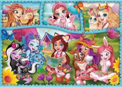 Dziecięce puzzle z 200 elementami z ulubionymi bohaterkami ENCHANTIMALS. Po ułożeniu powstanie obraz o wymiarach 48 × 34 cm. O intensywne kolory i gładki wygląd dba błyszczący papier kalandrowany, a dodatkowo użyto materiałów ekologicznych dla bezpiecznej i przyjaznej zabawy.