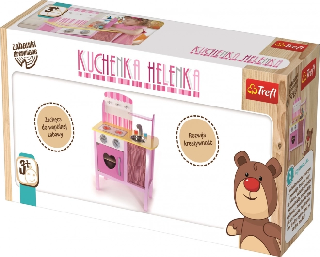 Kuchnia dla dzieci Helenka TREFL to stylowa drewniana zabawka, która przeniesie maluchy w świat gotowania. Dzięki realistycznym elementom, takim jak kuchenka z piekarnikiem, zlew i praktyczna przestrzeń do przechowywania, dzieci ćwiczą małą motorykę oraz umiejętności społeczne podczas zabawy w odgrywanie ról.