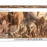 Przenieś się do świata dinozaurów z tym starannie opracowanym panoramicznym puzzle. Idealne dla miłośników dinozaurów i entuzjastów układania puzzli.
