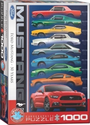 Świętuj legendę motoryzacji z puzzlami EUROGRAPHICS z okazji 50-lecia Ford Mustang. Czeka na Ciebie 1000 elementów, unikalna nieregularna sztanca dla wyższego poziomu trudności oraz wymiary po ułożeniu 48,89 × 67,63 cm. Napisy na obrazku są w języku angielskim.