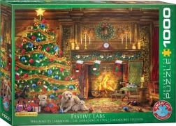 Zrelaksuj się przy układaniu pięknego motywu z psami labradorami przy świątecznej choince. Puzzle marki EUROGRAPHICS oferują 1000 elementów o nietypowych kształtach, które zwiększają zabawę i poziom trudności, a po ułożeniu tworzą obraz o wymiarach około 67,63 × 48,89 cm.