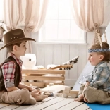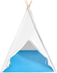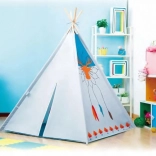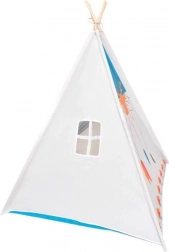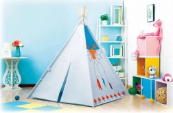 Budowa jest prosta i szybka: drewniane kije wystarczy połączyć i związać w górnej części. Pokrowiec z trwałego poliestru, a podłóżka zwiększa wygodę nawet na chłodnej podłodze. Roletowe wejście i okienko zapewniają cyrkulację powietrza i wesołą atmosferę. Po zabawie tipi łatwo złożyć i schować do szafy.