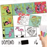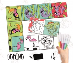 Kolorowe domino z serii „Colouring Activities” to idealny wybór dla dzieci, które kochają kreatywną zabawę. Najpierw pokoloruj obrazki zwierząt, a następnie ciesz się klasyczną grą wzbogaconą o osobisty, kreatywny charakter.