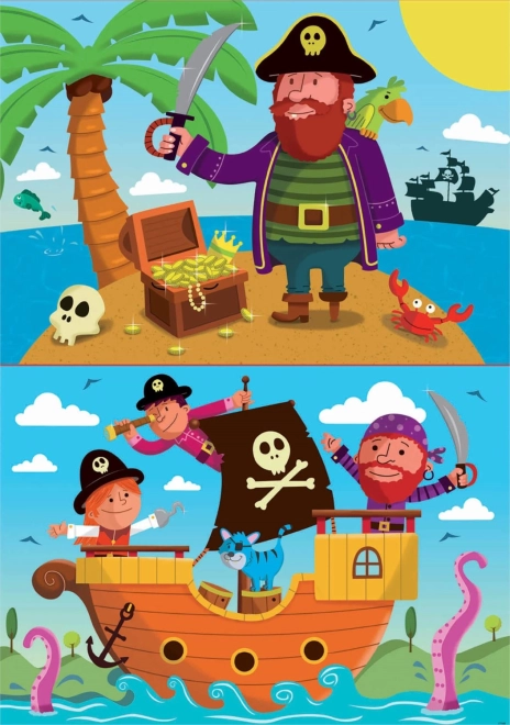 Ciesz się zabawą z pirackim motywem dzięki puzzlom firmy Educa. Układanie puzzli pomaga rozwijać dziecięcą wyobraźnię i umiejętności motoryczne. Zestaw zawiera dwa obrazki, każdy o wymiarach 28 x 20 cm, które razem tworzą wspaniały piracki świat.