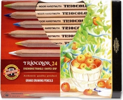 Odkryj wysokiej jakości trójkątne kredki KOH-I-NOOR z naturalnego drewna, idealne dla dziecięcych dłoni. Oferują grube, wyraziste grafity, nasycone i jasne kolory oraz wygodny chwyt bez ślizgania.