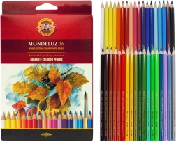 Zestaw akwarelowych kredek KOH-I-NOOR MONDELUZ w liczbie 36 sztuk jest idealny do rysunku detalicznego i malowania z użyciem wody. Pigmenty charakteryzują się doskonałą światłotrwałością i czystością barw, dzięki czemu Twoje prace pozostaną jasne i wyraziste przez długi czas. Po kontakcie z pędzlem i wodą ślad pięknie się rozmalowuje, pozwalając osiągnąć efekty typowe dla akwareli.