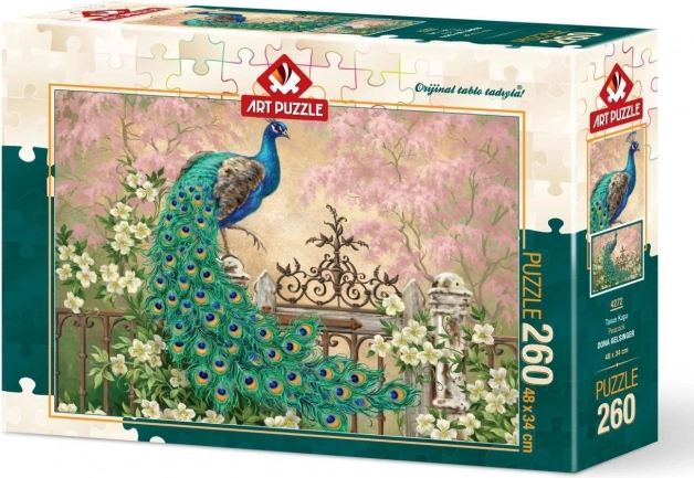 Rozkoszuj się spokojnymi chwilami z pięknym motywem pawia, który wyróżni się w każdym wnętrzu. Puzzle z 260 elementami to świetny wybór dla początkujących i bardziej zaawansowanych układających; rozwijają cierpliwość, koncentrację oraz motorykę małą.