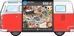 Kolekcjonerskie puzzle w metalowym pudełku w kształcie autobusu Volkswagen, które ucieszą wszystkich miłośników pojazdów marki VW. Świetne jako prezent lub dekoracja.