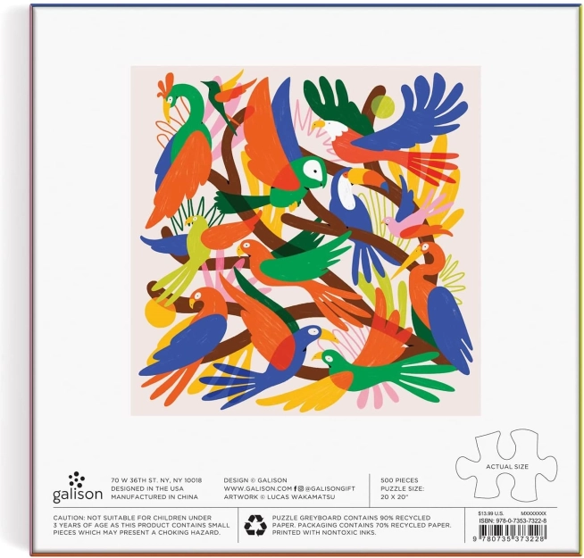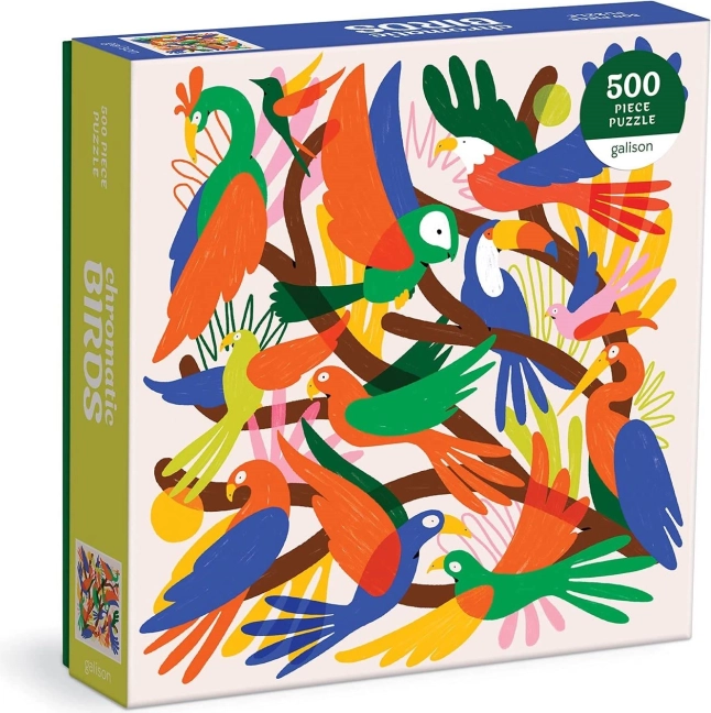 Te eleganckie, kwadratowe puzzle oferują barwne widowisko pełne detali. Motyw chromatycznych ptaków jest idealny dla wszystkich miłośników przyrody i designu, którzy szukają relaksującej rozrywki oraz stylowego dodatku do wnętrza.