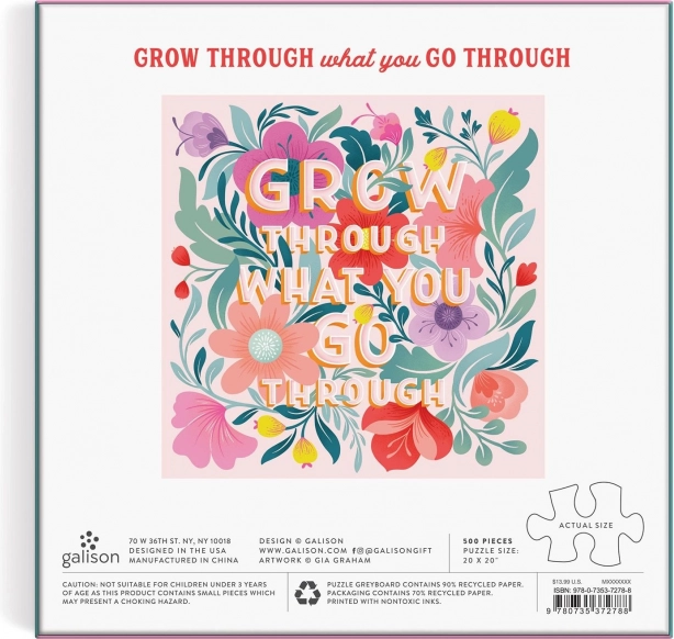 Zrelaksuj się przy stylowym układaniu: kwadratowe puzzle GALISON „Grow Through What You Go Through” z 500 elementami oferują stylowy motyw, wysokiej jakości druk oraz dołączoną planszę poglądową dla wygodnego układania. Gotowe dzieło ma wymiary 50,8 × 50,8 cm – idealne do oprawienia w ramę.