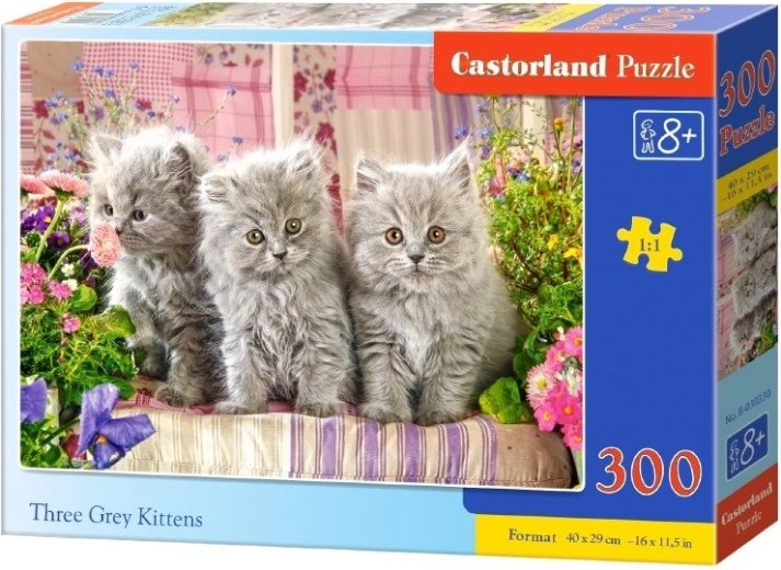 Odkryj magię układania z puzzlami 300 elementów, które zachęcą Cię do stworzenia pięknego obrazu Trzech szarych kociątek.