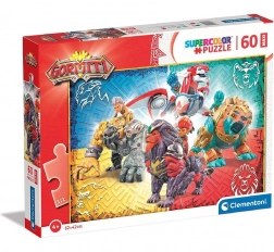 Zabawne puzzle podłogowe dla dzieci od 4 lat z motywem GORMITI. Kolekcja SuperColor oferuje 60 elementów MAXI, które łatwo się trzyma i układa. Wysokiej jakości materiały oraz intensywne, żywe kolory wspierają rozwój małej motoryki, myślenia logicznego i umiejętności koncentracji. Gotowy obraz ma około 42 × 62 cm.
