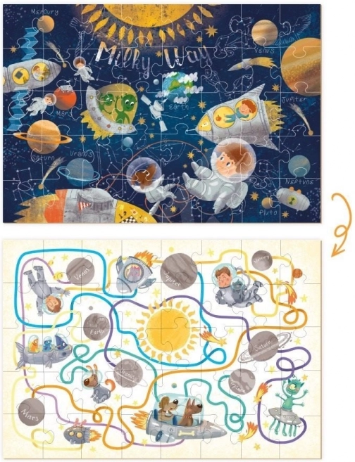 Ten wesoły zestaw łączy układanie dwustronnych puzzli z angażującymi aktywnościami, które wciągają dzieci w temat kosmosu. Dzięki barwnym ilustracjom i przemyślanym zadaniom wspiera ciągłą naukę poprzez zabawę i wzmacnia umiejętność koncentracji.