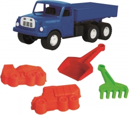 Dzięki temu zestawowi do piasku dzieci zyskają mnóstwo kreatywnej zabawy. Solidny samochód Tatra z platformą (30 cm) przewiezie piasek i babki, a foremki w kształcie ciężarówki i betoniarki pobudzą ich wyobraźnię. Grabki i ergonomicznie wyprofilowana łopatka pomogą przy budowie dróg, zamków i tuneli.