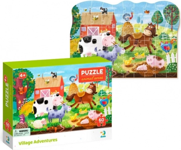 Zabawne puzzle z kolekcji Świat zwierząt od marki Dodo przedstawiają obrazek wiejskiej farmy o wymiarach 32 × 23 cm. Dzięki pięknym ilustracjom, wysokiej jakości wykonaniu i obrysowej ramce świetnie układają się nawet młodszym dzieciom. Puzzle można połączyć z innymi scenami z tej samej serii, rozszerzając świat fauny o sawannę, las czy ocean. Odpowiednie dla dzieci od 4 lat.