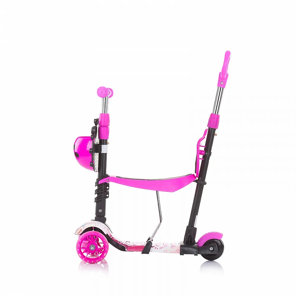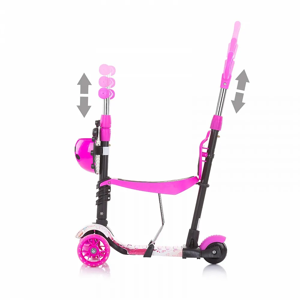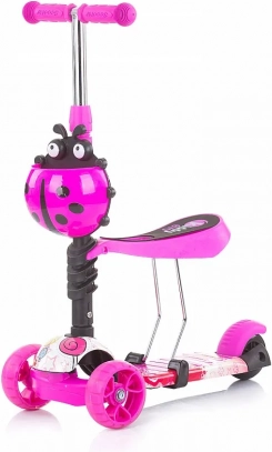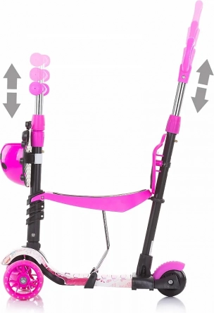 CHIPOLINO Kiddy Evo 3w1 to świetny wybór dla aktywnych dzieci. Dzięki trzem trybom – jeździk, hulajnoga i jazda z drążkiem prowadzącym – wspiera rozwój motoryczny, równowagę i pewność podczas jazdy. Rodzice docenią odpinany drążek prowadzący, który ułatwia pierwsze przejażdżki, a dzieci z kolei kolorowe lampki LED w przednich kółkach dla zabawy i lepszej widoczności.