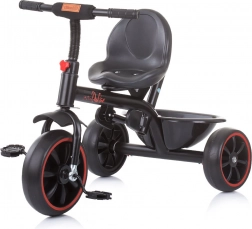 Przemyślane detale, takie jak składany podnóżek dla młodszych dzieci, przednie koło z błotnikiem i osłoną przeciw wkręceniu nóżek oraz tylny kosz sprawiają, że ta trójkołówka to praktyczny pomocnik na co dzień.
