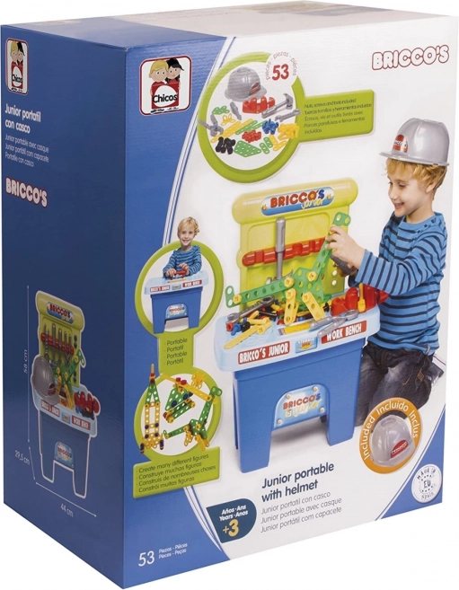 Odkryj niekończącą się zabawę z przenośnym stołem warsztatowym, który daje dzieciom możliwość stania się małymi rzemieślnikami. Ten kolorowy zestaw zawiera 53 elementy, w tym kask, który dodaje odpowiedniego poczucia pracy. Dzieci mogą tworzyć różne konstrukcje i uczyć się podstaw mechaniki i logiki poprzez zabawę.