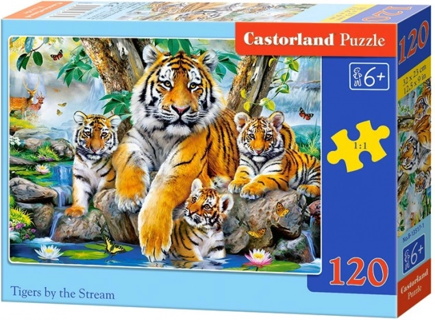 Stwórz zachwycający obrazek Tygrysów przy potoku dzięki tym puzzlom złożonym ze 120 elementów. Idealne dla dzieci od 6 lat, które szukają większych wyzwań.