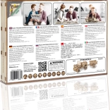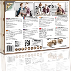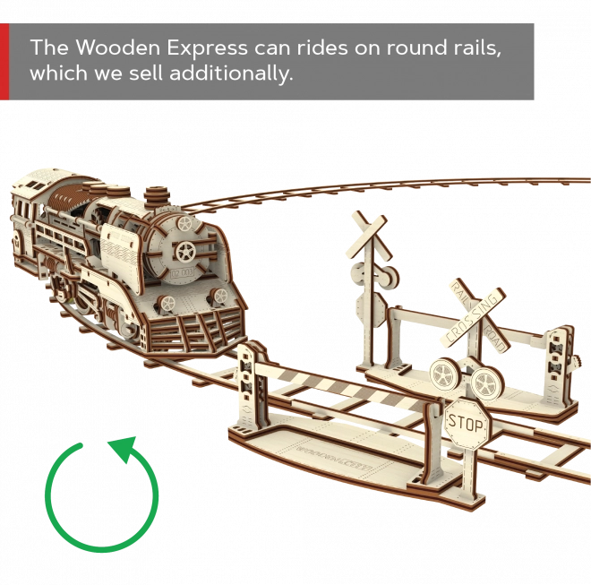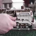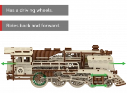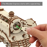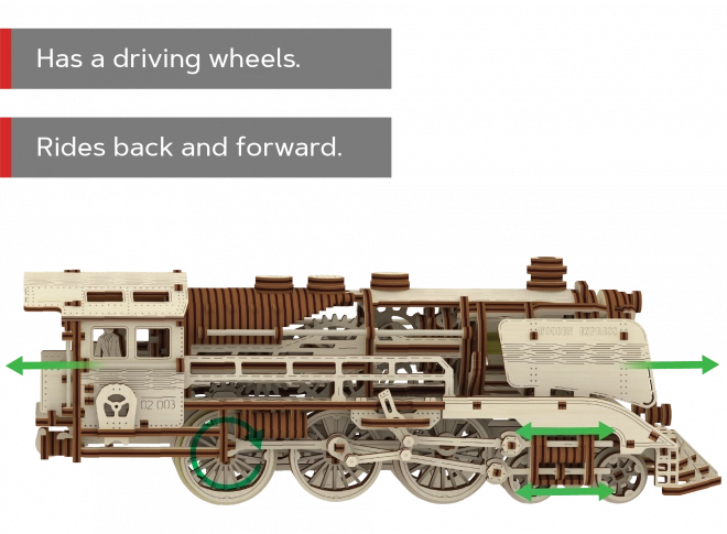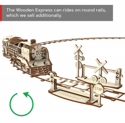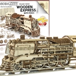 Doświadcz radości z precyzyjnej pracy w drewnie i zobacz, jak Twoja lokomotywa parowa zamienia się w żywy mechaniczny model. WOODEN CITY Wooden Express to detaliczne puzzle 3D z wysokiej jakości brzozowej sklejki, które składa się bez kleju i narzędzi. Po złożeniu umieszczasz model na dołączonych torach i dzięki gumowemu napędowi rusza do przodu, do tyłu, a także po okręgu.