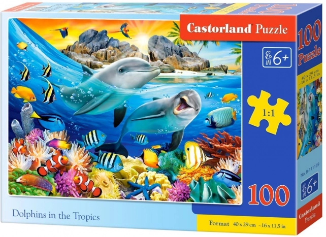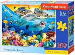 Puzzle z motywem DELPHINS IN THE TROPICS łączą relaks, estetykę i rozwój umiejętności. Dzięki 100 solidnym elementom są idealne dla dzieci, które mają już doświadczenie z układaniem, a także dla dorosłych szukających chwili wytchnienia. Gotowy obraz o rozmiarze 40 × 29 cm świetnie zaprezentuje się w pokoju dziecięcym.