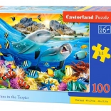 Ciesz się układaniem pięknego motywu z delfinami w tropikalnym raju. Te wysokiej jakości puzzle ze 100 elementami oferują zarówno zabawę, jak i naukę – rozwijają koncentrację, cierpliwość oraz postrzeganie kolorów i kształtów. Po ułożeniu mają wymiary 40 × 29 cm i sprawią radość dzieciom oraz dorosłym.