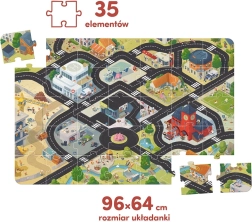 Specjalna cecha: Ułożenie puzzli to punkt wyjścia do dalszej zabawy, takiej jak jeżdżenie autkami czy budowanie domów z kartonu lub klocków.