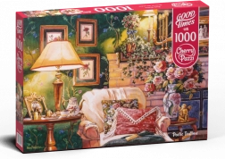Puzzle „Poezja popołudnia z herbatą” to układanka przedstawiająca przytulny kącik herbaciany stworzony przez utalentowaną artystkę Erin Dertner. Podczas układania poczujesz atmosferę spokojnej wsi.