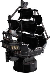 Ten 3D puzzle replikuje ikoniczny statek z czarnymi żaglami i czaszką na fladze.
